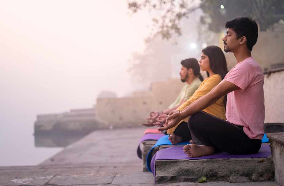 Daily wellness activities including yoga, breathing exercises, and balanced diets to enhance physical, mental, and emotional health.
